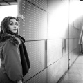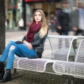 Sitzend auf einer Bank ist sicherlich nicht die klassische Modelpose, aber warum nicht? Gewünscht waren die sich bewegenden Menschen drum herum, ebenso beim nächsten Bild.
